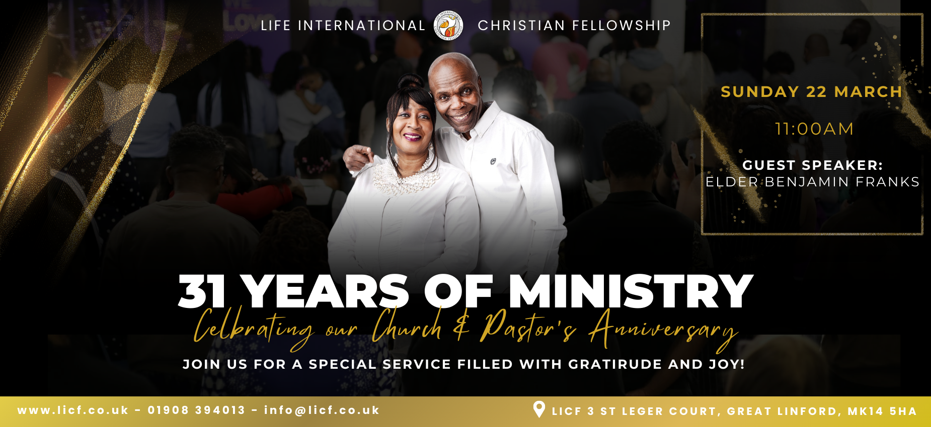 Sunday Services: 11:00 am | Wednesday Word Of Worship (Online Service): 19:30 | First Friday Night Prayer: 20:00